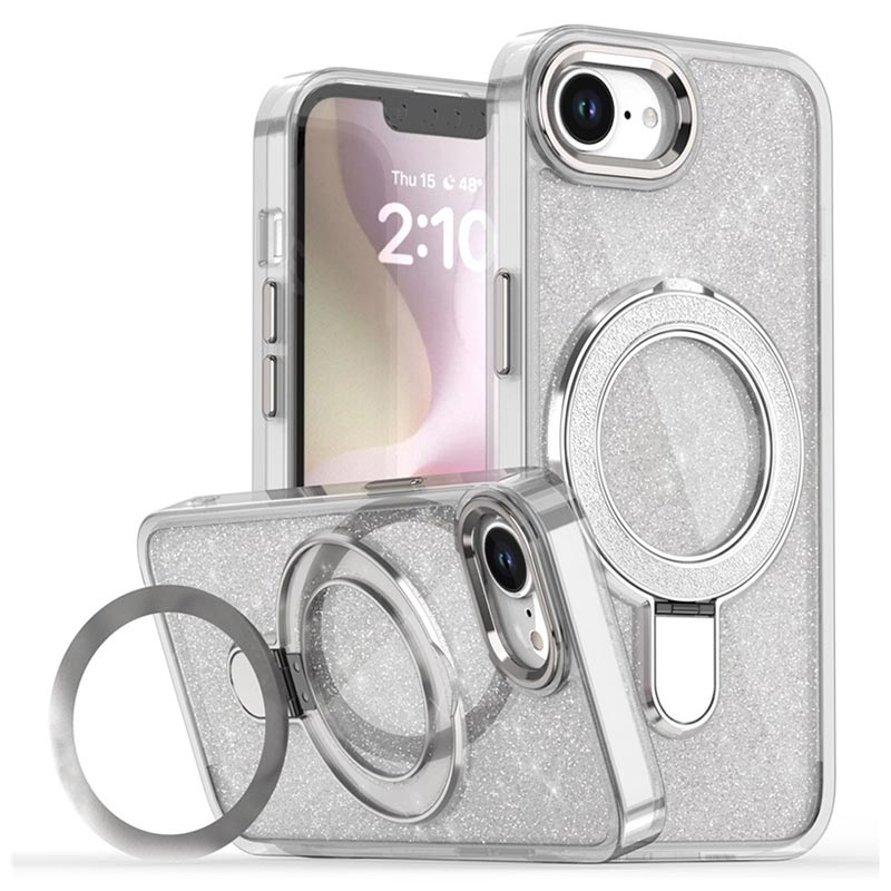 • Glitter Hülle mit Kickstand für iPhone 16e - MagSafe kompatible TPU + PC Hybrid Kickstand Cover