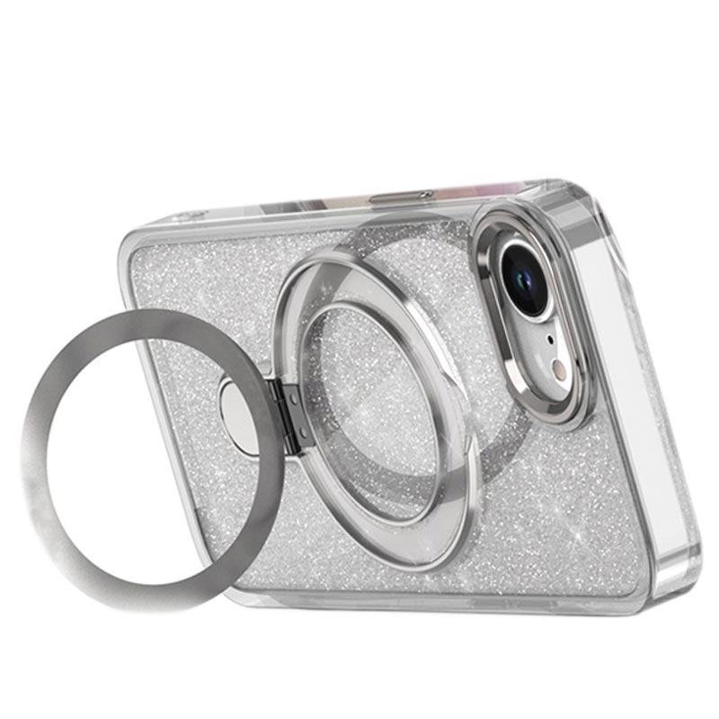 iPhone 16e Glitter Hybrid Hülle mit Kickstand - MagSafe-kompatibel - Durchsichtig