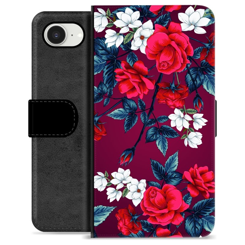 iPhone 16e Premium Schutzhülle mit Geldbörse - Vintage Blumen