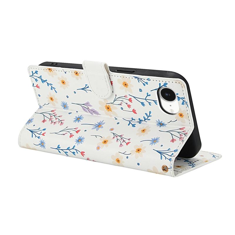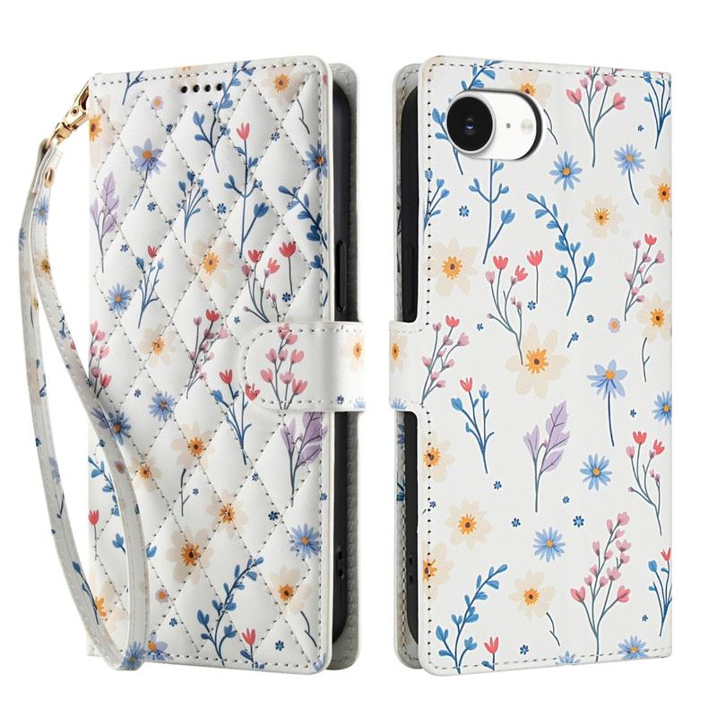 Rhombisches Blumen Wallet Hülle für iPhone 16e - mit Riemen und Kartenfächern