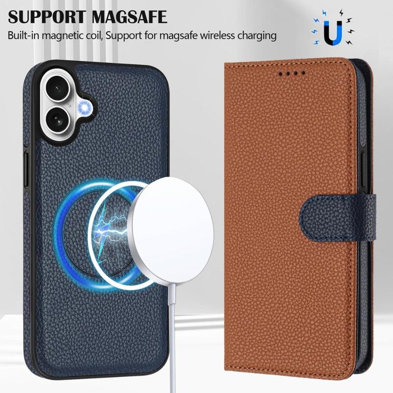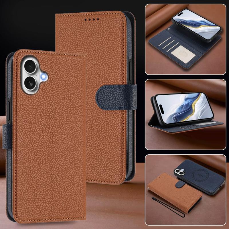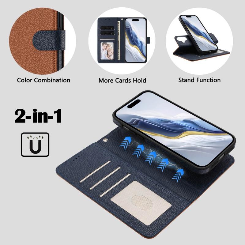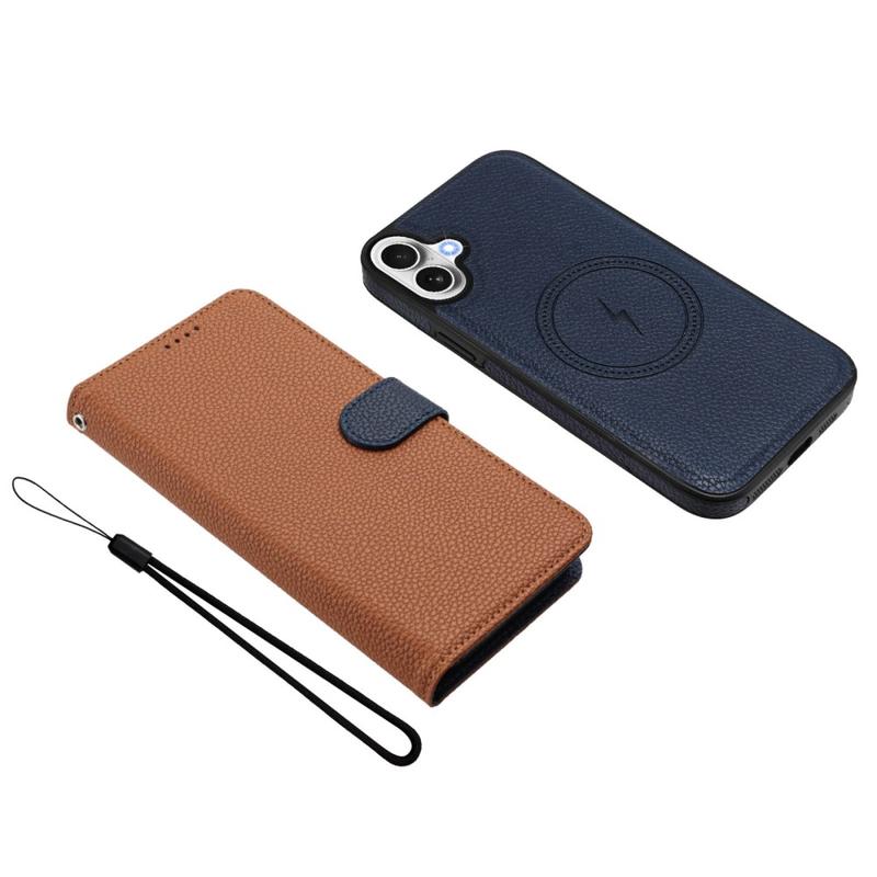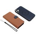 iPhone 17 Abnehmbare Wallet Hülle mit MagSafe, RFID Schutz und Handschlaufe - Braun / Blau