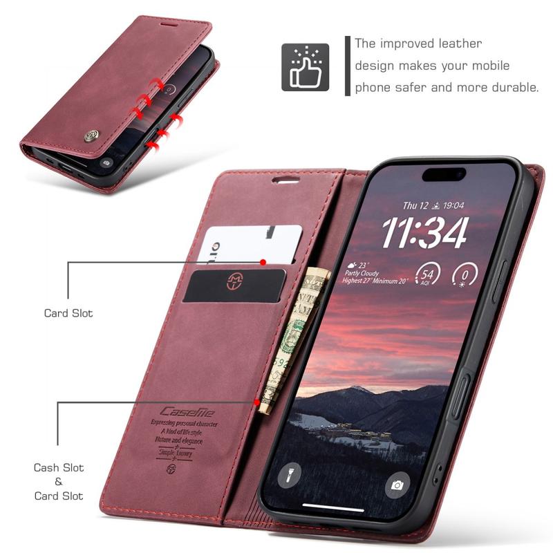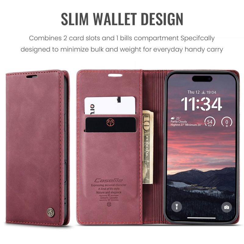- Eingebaute Magnete halten die Caseme 013 Series Wallet-Hülle geschlossen