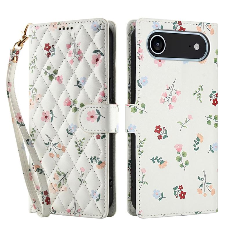 Erfrischen Sie Ihr iPhone Air mit einem schlanken Flip Wallet, das sicheren Schutz mit Alltagstauglichkeit verbindet. Die rautenförmig genähte Vorderseite und das winzige Blumenmuster sorgen für eleganten Stil, während eine weiche TPU-Schale Stürze abfedert und eine Polyurethanhülle vor Kratzern schützt. Mehrere Kartenfächer, ein Fach für Bargeld und eine mitgelieferte Handschlaufe machen diese Tasche zu einer Komplettlösung für unterwegs, auf Reisen oder beim Ausgehen.