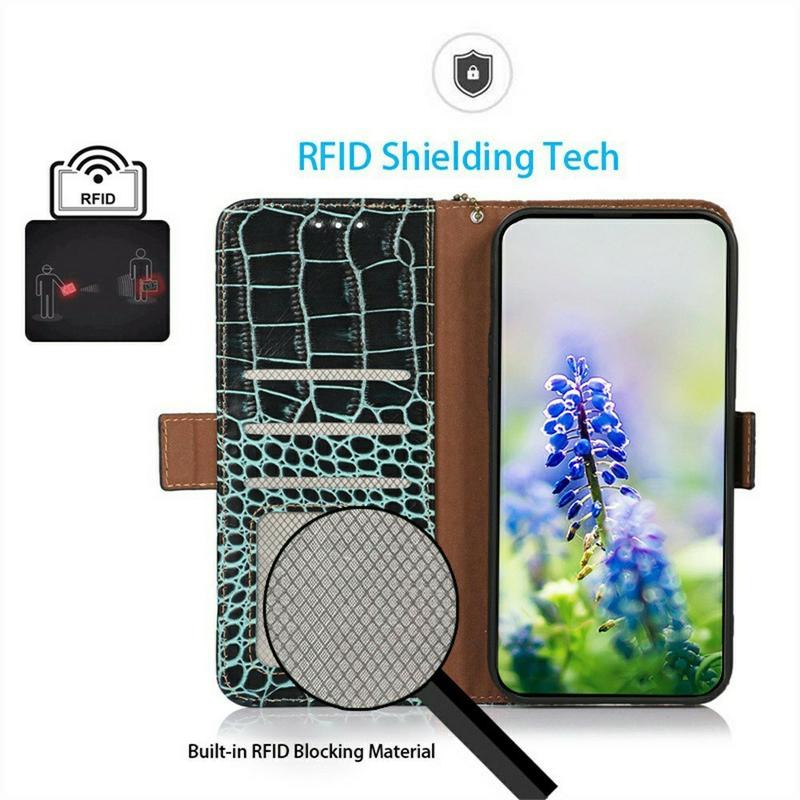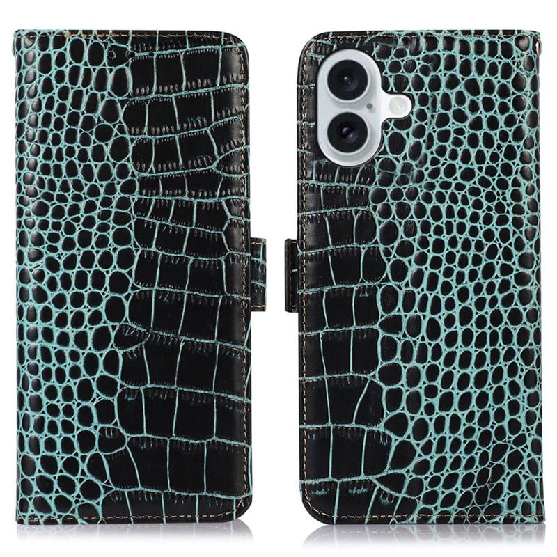 iPhone 17 Crocodile Serie Lederhülle mit Geldbörse mit RFID - Grün