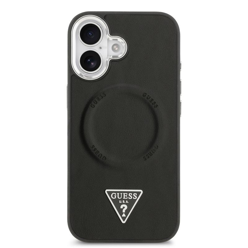 Guess Triangle Logo Hülle für iPhone 17 - MagSafe-kompatible elegante PU-Schutzhülle für die Rückseite