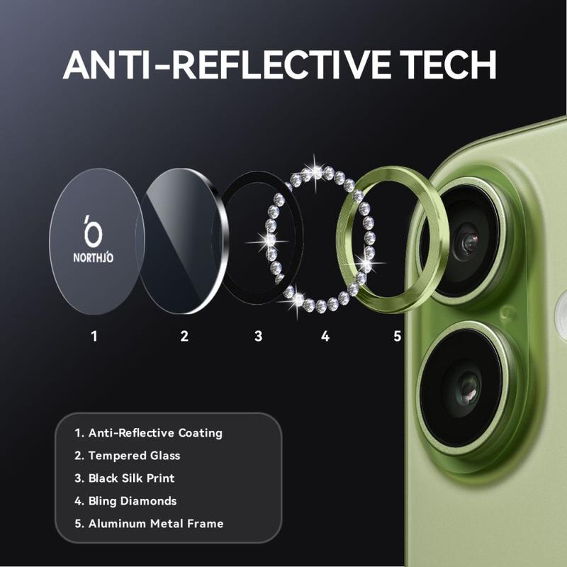 • Northjo Strassstein gehärtetes Glas Kamera Objektiv Schutz Set für iPhone 17