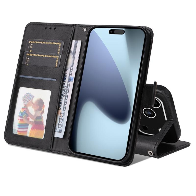 iPhone 17 Pro Wallet Hülle mit Ständer - Schwarz