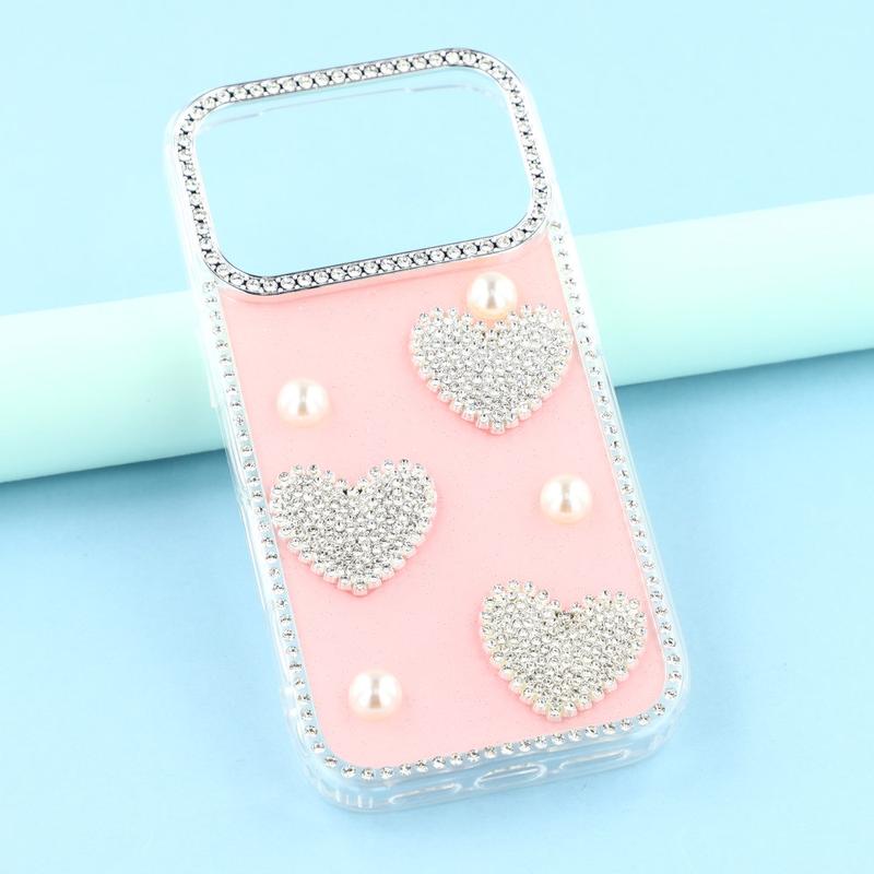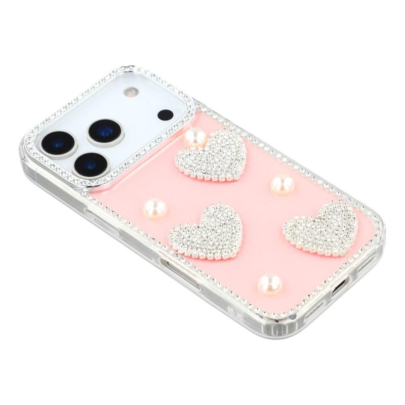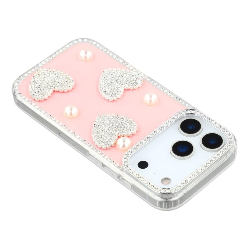 Diese iPhone 17 Pro Max Hülle kombiniert zuverlässigen Schutz im Alltag mit glamourösem Stil. Mit schimmernden Strasssteinen an den Rändern und funkelnden Perlenherzen auf der Rückseite verwandelt sie dein iPhone 17 Pro Max in ein modisches Accessoire und schützt es gleichzeitig vor Kratzern und Stößen.