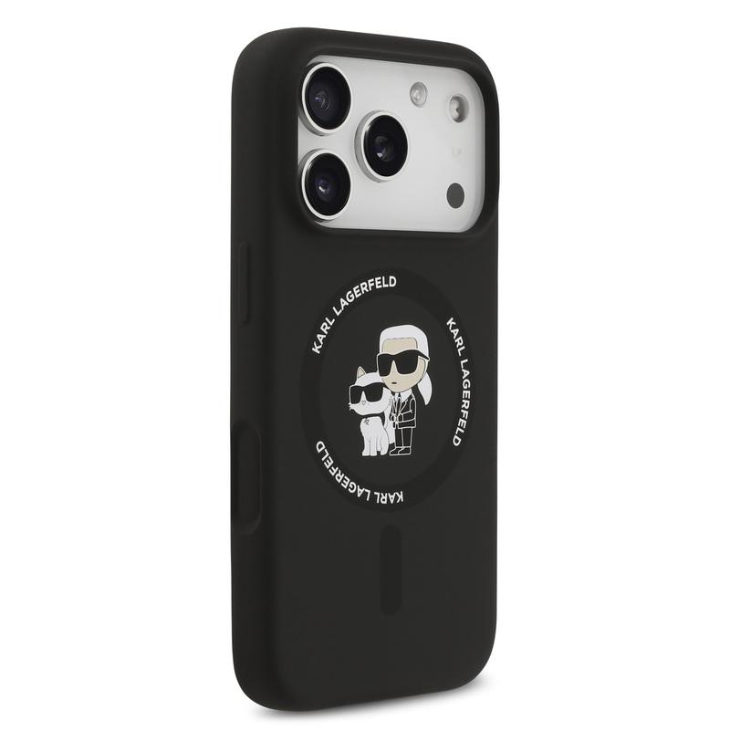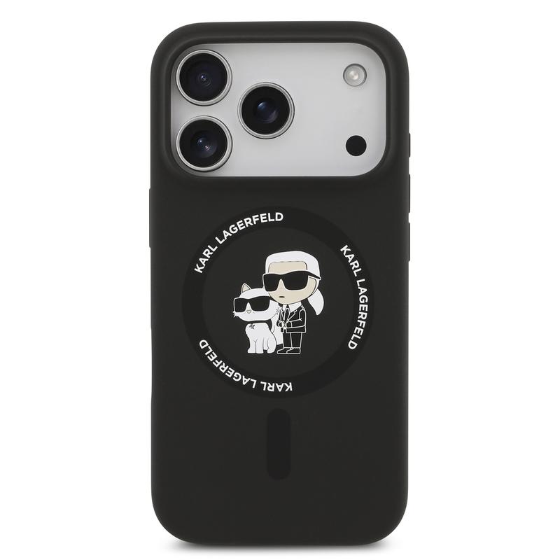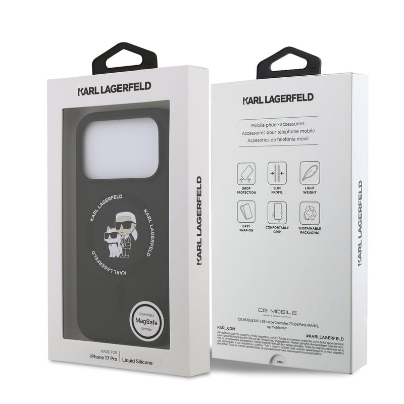 iPhone 17 Pro Karl Lagerfeld Karl and Choupette Flüssigkeit Silikon MagSafe Hülle - schwarz