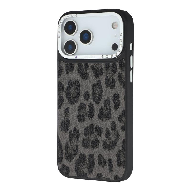 • Jaucase Magnetische Hybridhülle mit Leopardenmuster für iPhone 17 Pro - PU + TPU + PC mit Strass Objektiv Rahmen