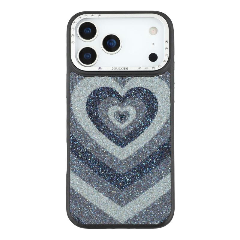 • Jaucase Magnetische Hybridhülle mit Herzmuster für iPhone 17 Pro Max - Polyurethan + TPU + PC mit Rhinestone Lens Rahmen