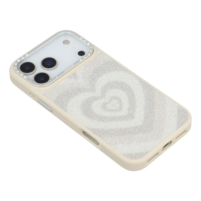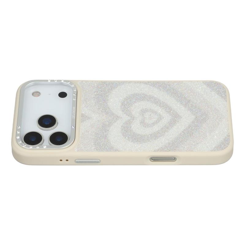 • Jaucase Magnetische Hybridhülle mit Herzmuster für iPhone 17 Pro - Polyurethan + TPU + PC mit Rhinestone Lens Frame
