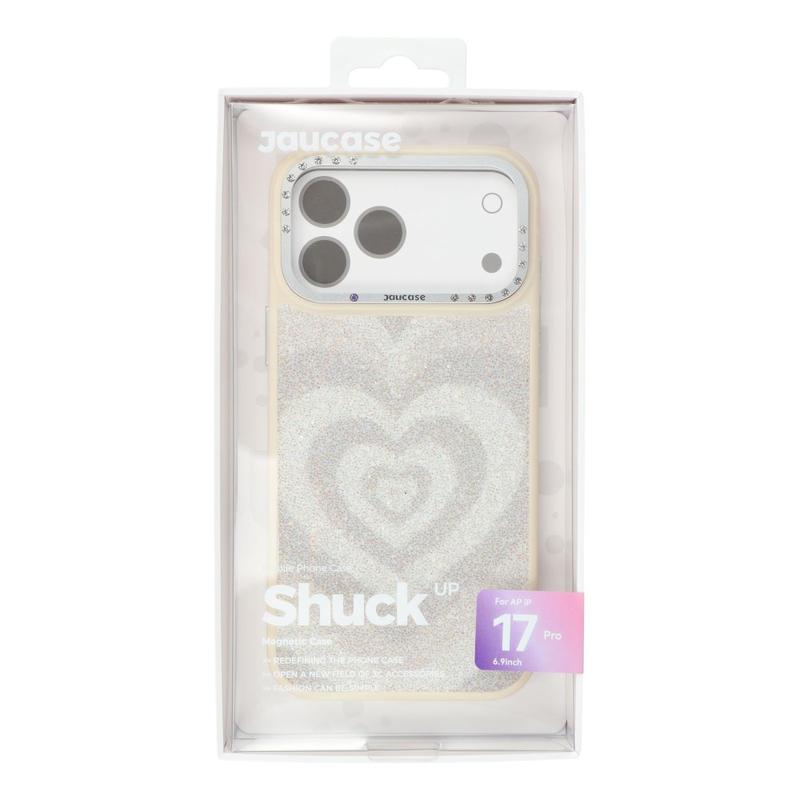 iPhone 17 Pro Jaucase Magnetische Hybridhülle mit Herzmuster - weiß