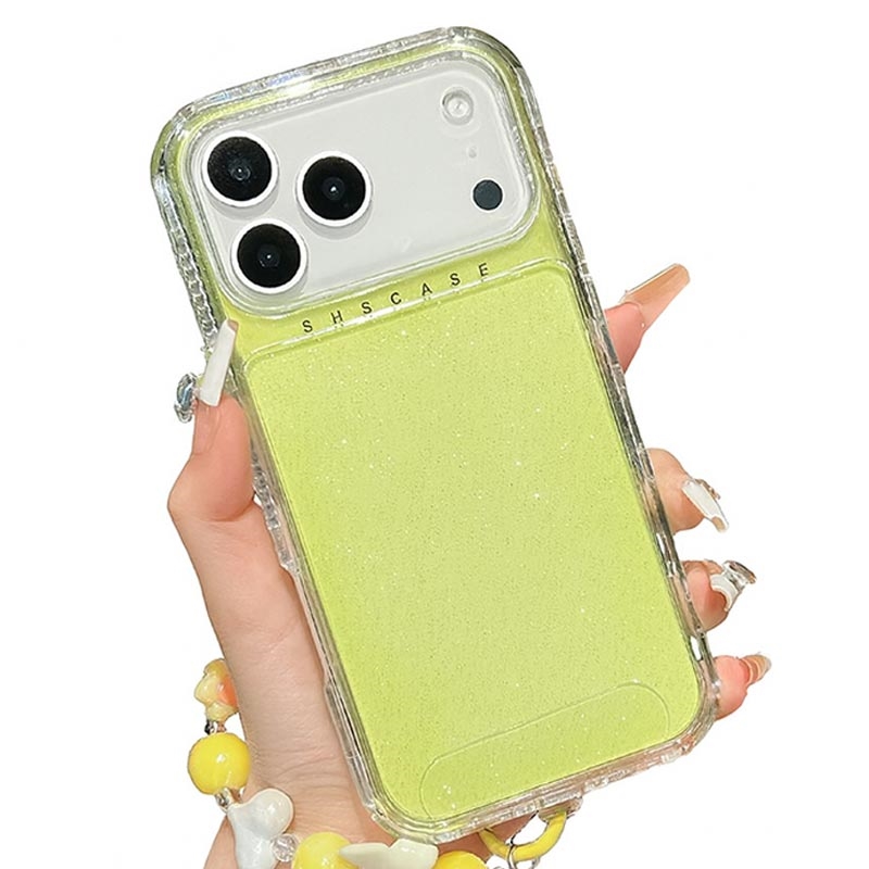 iPhone 17 Pro Max Glitter Stoßfestes Hybrid Hülle mit Handgelenkschlaufe - Gelb