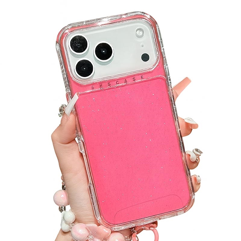 iPhone 17 Pro Max Glitter Stoßfestes Hybrid Hülle mit Handgelenkschlaufe - Hot Pink