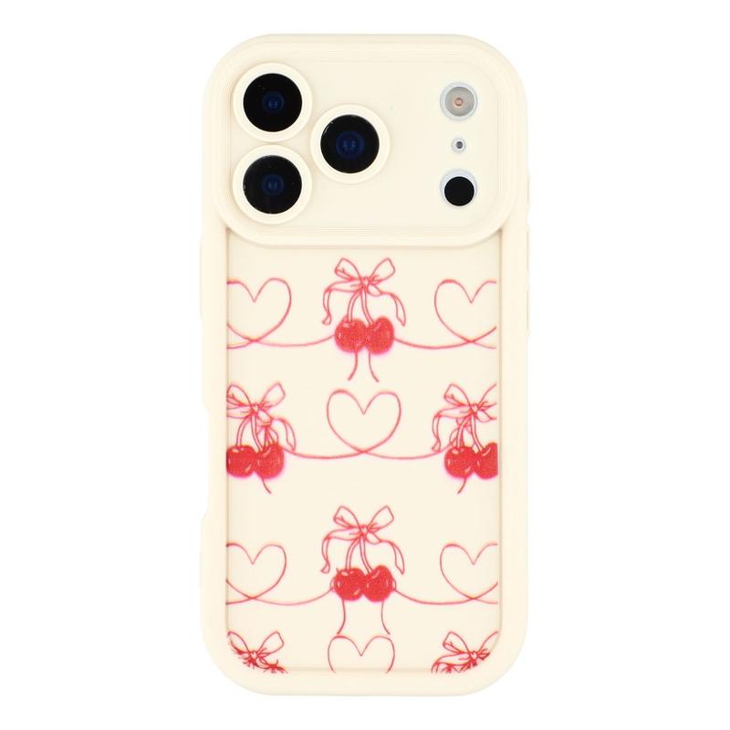 iPhone 17 Pro Stilvolle stoßfeste TPU-Hülle mit erhöhten Kanten - Weiß / Kirschen mit Schleife