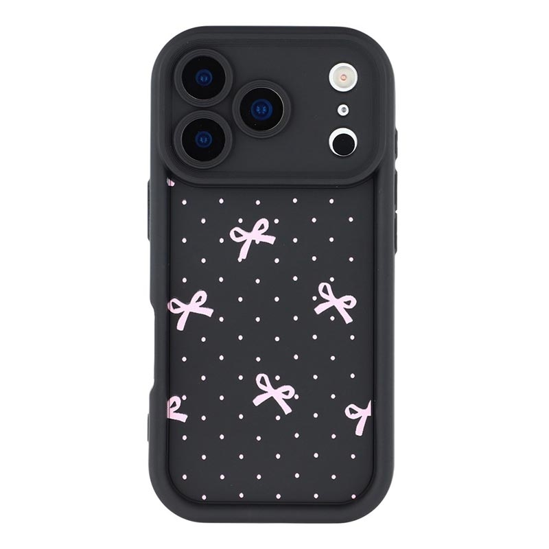 iPhone 17 Pro Max Stilvolle stoßfeste TPU-Hülle mit erhöhten Kanten - Schwarz / Gepunktete Schleife