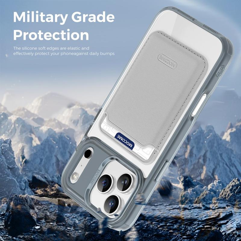 Schützen Sie Ihr Gerät stilvoll mit dem MagSafe Case für das iPhone 17 Pro Max, das sowohl auf Haltbarkeit als auch auf Komfort ausgelegt ist. Diese Hülle besteht aus einer Hybridkonstruktion aus TPU und PC und kombiniert Flexibilität mit Stärke, um Ihr Gerät vor Stürzen, Kratzern und täglichem Verschleiß zu schützen. Dank des integrierten Magnetrings ist sie vollständig kompatibel mit MagSafe-Ladegeräten und magnetischen Autohalterungen, während die abnehmbare, schlanke Kartentasche mit zwei Magneten das Mitführen von 1-2 Karten ermöglicht, ohne dass sie zu groß wird. Die kristallklare Oberfläche lässt Ihr iPhone 17 Pro Max elegant und originell aussehen, während verstärkte Ränder und erhöhte Einfassungen einen Rundumschutz für Ihr Display und Ihre Kamera gewährleisten.