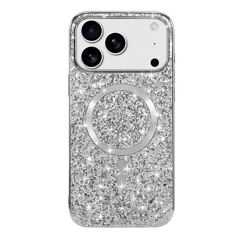 iPhone 17 Pro Galvanisierte Glitzer Hülle - MagSafe-kompatibel - Silber