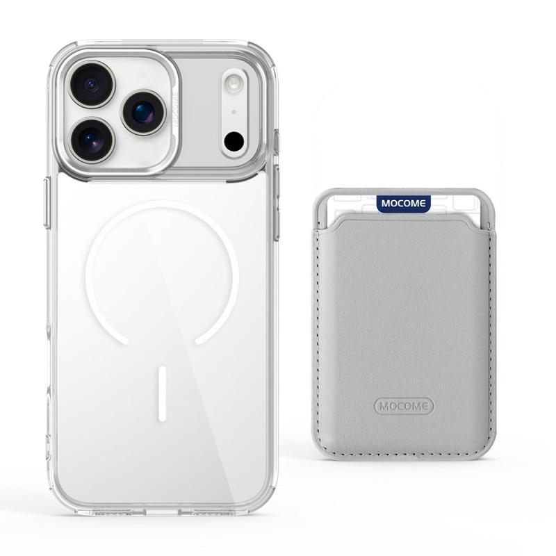 Schützen Sie Ihr Gerät stilvoll mit dem MagSafe Case für das iPhone 17 Pro, das sowohl auf Haltbarkeit als auch auf Komfort ausgelegt ist. Diese Hülle besteht aus einer Hybridkonstruktion aus TPU und PC und kombiniert Flexibilität mit Stärke, um Ihr Gerät vor Stürzen, Kratzern und täglichem Verschleiß zu schützen. Dank des integrierten Magnetrings ist sie vollständig kompatibel mit MagSafe-Ladegeräten und magnetischen Autohalterungen, während die abnehmbare, schlanke Kartentasche mit zwei Magneten das Mitführen von 1-2 Karten ermöglicht, ohne dass sie zu groß wird. Die kristallklare Oberfläche lässt Ihr iPhone 17 Pro elegant und originell aussehen, während verstärkte Ränder und erhöhte Einfassungen einen Rundumschutz für Ihr Display und Ihre Kamera gewährleisten.