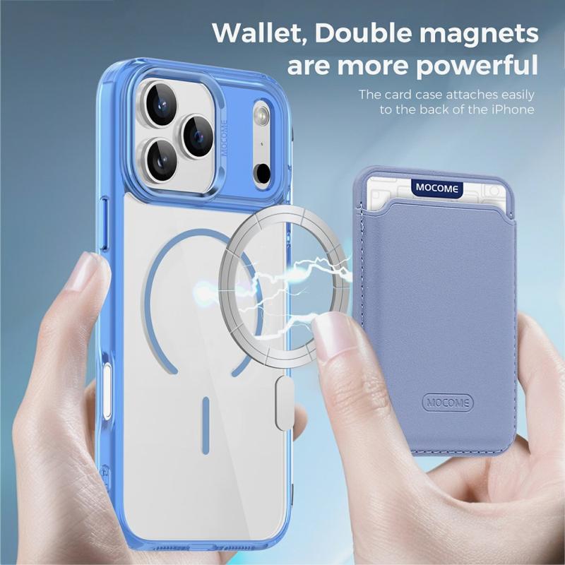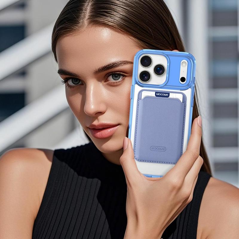 Schützen Sie Ihr Gerät stilvoll mit dem MagSafe Case für das iPhone 17 Pro, das sowohl auf Haltbarkeit als auch auf Komfort ausgelegt ist. Diese Hülle besteht aus einer Hybridkonstruktion aus TPU und PC und kombiniert Flexibilität mit Stärke, um Ihr Gerät vor Stürzen, Kratzern und täglichem Verschleiß zu schützen. Dank des integrierten Magnetrings ist sie vollständig kompatibel mit MagSafe-Ladegeräten und magnetischen Autohalterungen, während die abnehmbare, schlanke Kartentasche mit zwei Magneten das Mitführen von 1-2 Karten ermöglicht, ohne dass sie zu groß wird. Die kristallklare Oberfläche lässt Ihr iPhone 17 Pro elegant und originell aussehen, während verstärkte Ränder und erhöhte Einfassungen einen Rundumschutz für Ihr Display und Ihre Kamera gewährleisten.