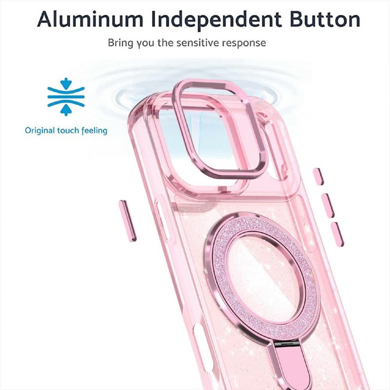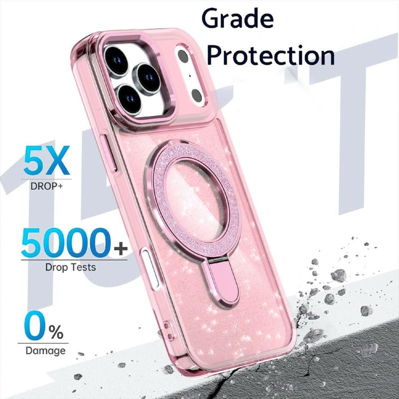 Glitter Hülle mit Kickstand für iPhone 17 Pro - MagSafe kompatible TPU + PC Hybrid Kickstand Cover