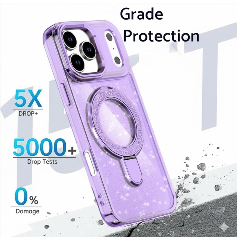 Glitter Hülle mit Kickstand für iPhone 17 Pro - MagSafe kompatible TPU + PC Hybrid Kickstand Cover
