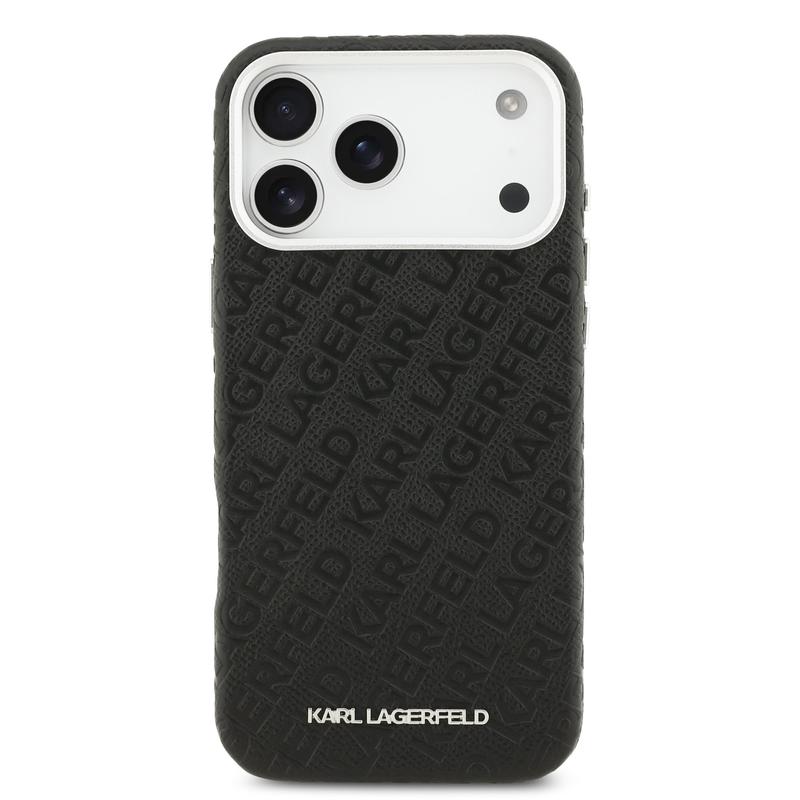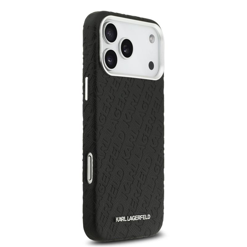 Karl Lagerfeld Grained Repeated Logo MagSafe Hülle für iPhone 17 Pro Max - Premium Polyurethan Rückseitenschutz