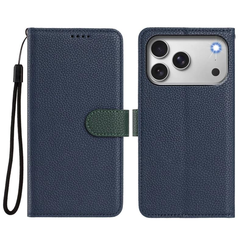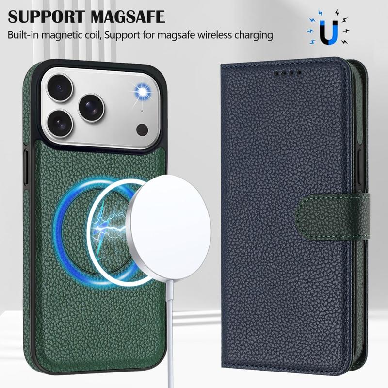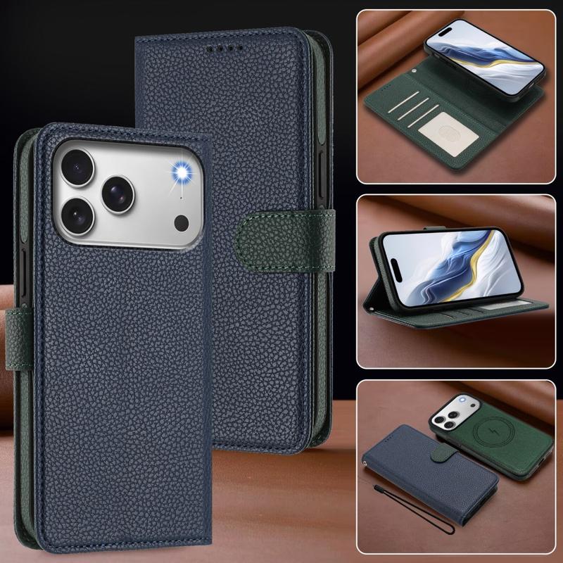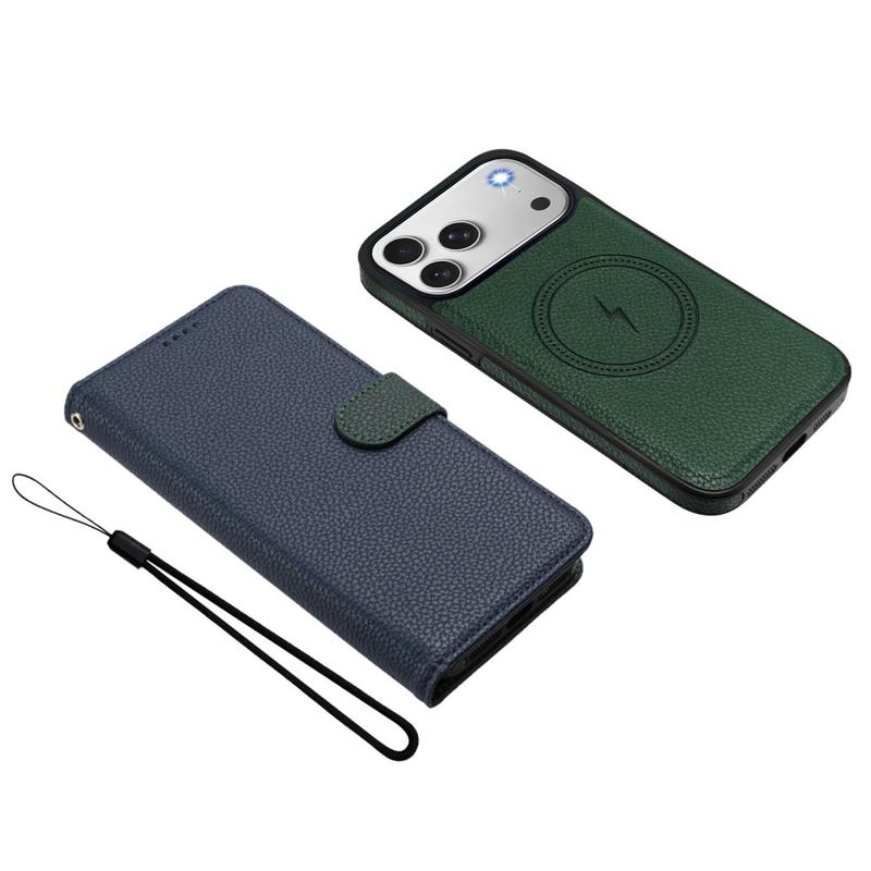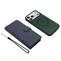 iPhone 17 Pro Max Abnehmbare Wallet Hülle mit MagSafe, RFID Schutz und Handschlaufe - Blau / Grün