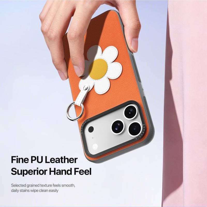 iPhone 17 Pro Dux Ducis Luvy Hülle mit Fingerring/Handschlaufe - Orange / Gänseblümchen