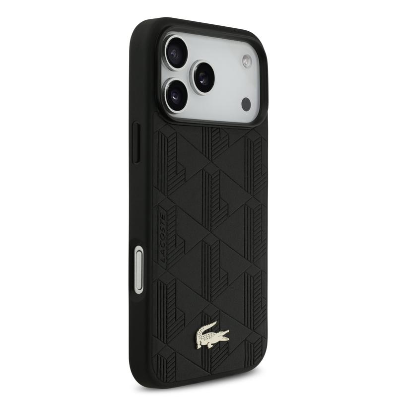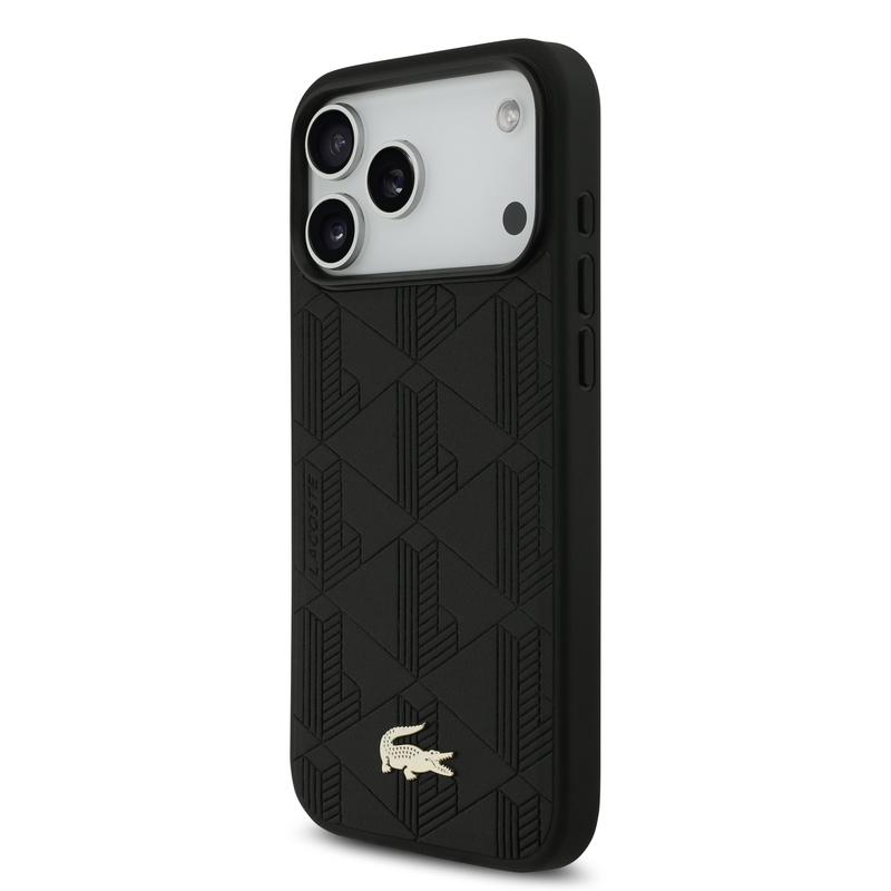 iPhone 17 Pro Max Lacoste Monogramme Gold Logo Hülle - MagSafe-kompatibel - Schwarz