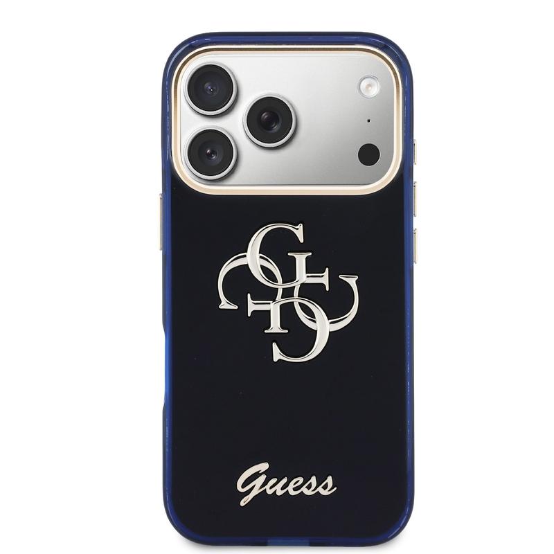 iPhone 17 Pro Max Guess IML 4G Script Metal Logo-Hülle - Blau