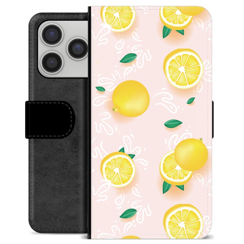 iPhone 17 Pro Premium Schutzhülle mit Geldbörse - Zitronen-Muster