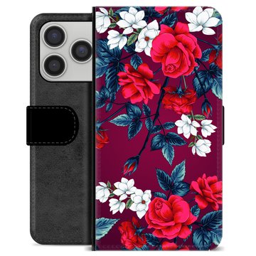 iPhone 17 Pro Premium Schutzhülle mit Geldbörse - Vintage Blumen