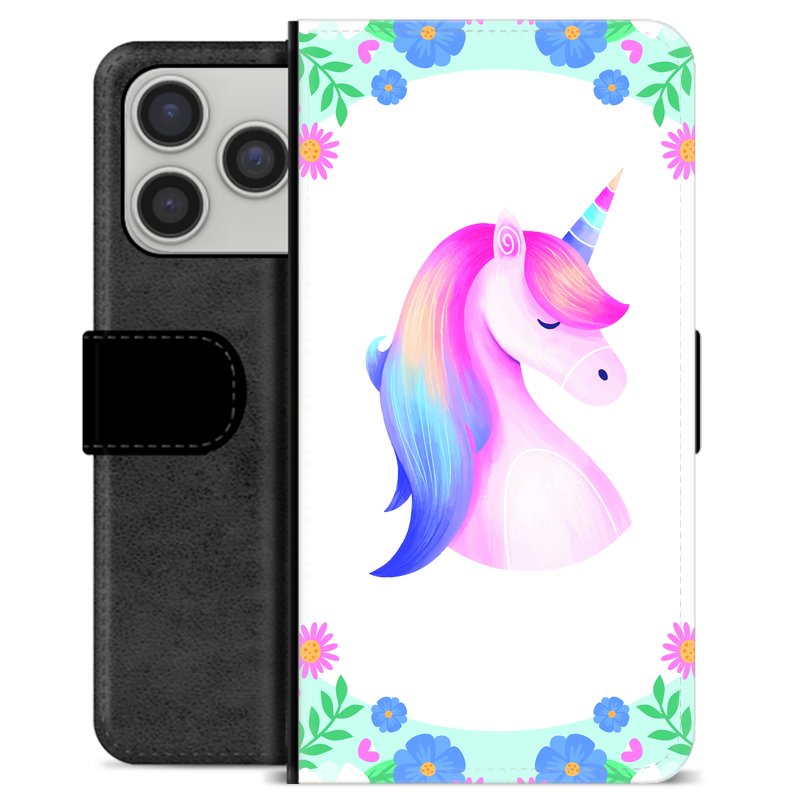 iPhone 17 Pro Premium Schutzhülle mit Geldbörse - Einhorn