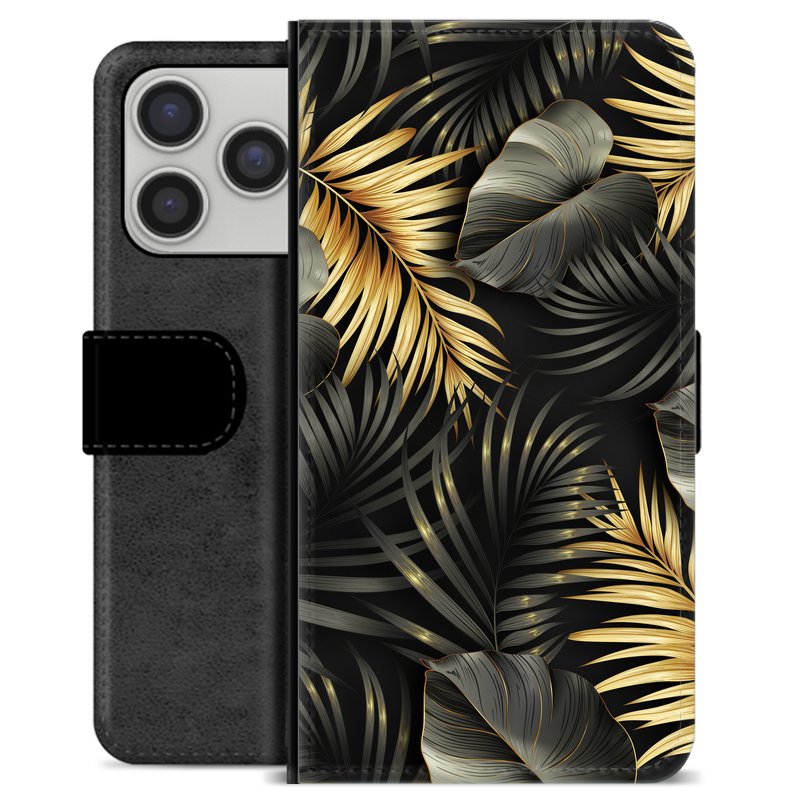 iPhone 17 Pro Premium Schutzhülle mit Geldbörse - Goldene Blätter