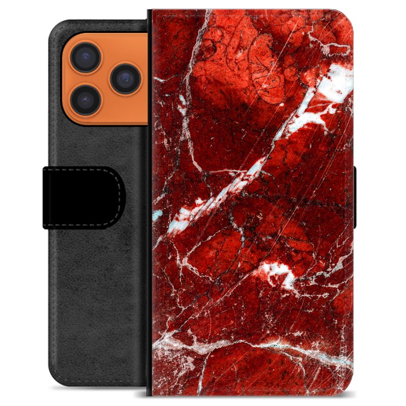 iPhone 17 Pro Max Premium Schutzhülle mit Geldbörse - Roter Marmor