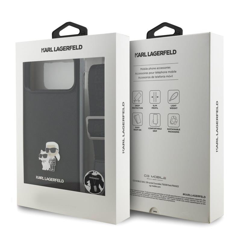 - Karl Lagerfeld Saffiano Crossbody Metal Karl & Choupette Hülle für iPhone 17 Pro