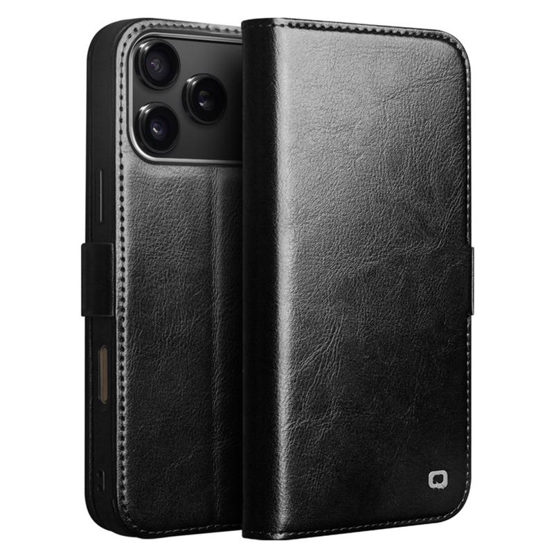 iPhone 17 Pro Max Qialino Classic Lederhülle mit Geldbörse - Schwarz