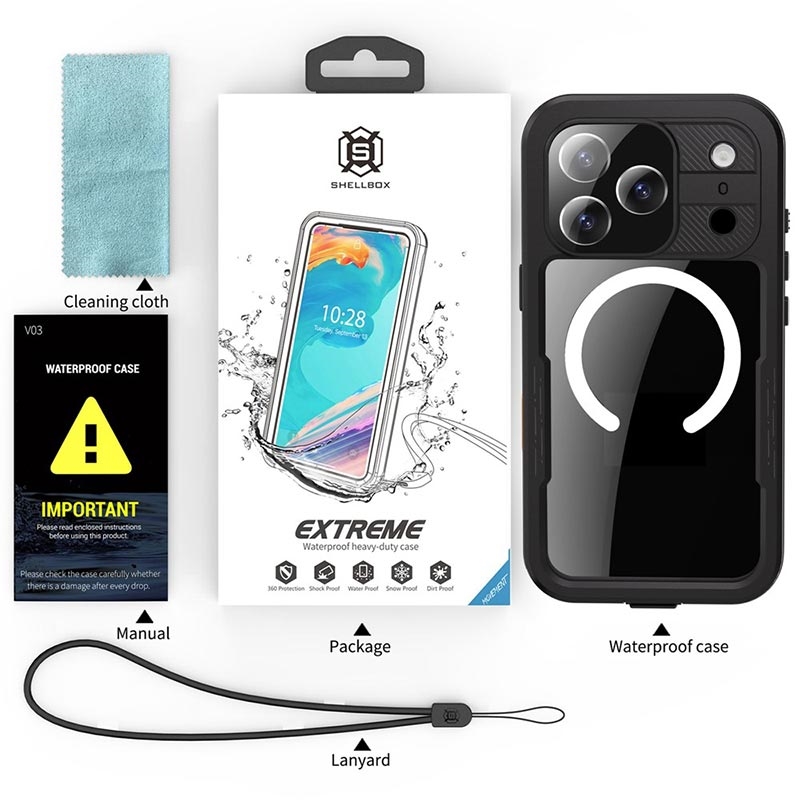 Statten Sie Ihr iPhone 17 Pro Max mit dem Shellbox M Series Waterproof Case aus und gehen Sie selbstbewusst in Ihr nächstes Abenteuer, denn Sie wissen, dass Ihr Gerät geschützt und bereit für Action ist.