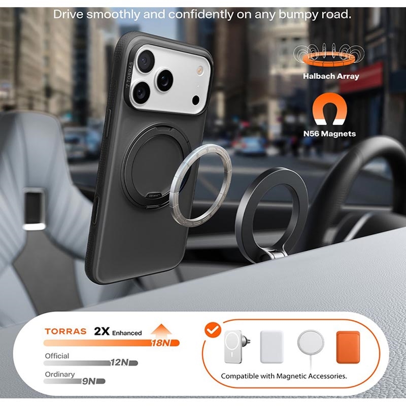 • Torras O Fitness Hülle mit 360 Kickstand für iPhone 17 Pro Max - MagSafe-kompatibel