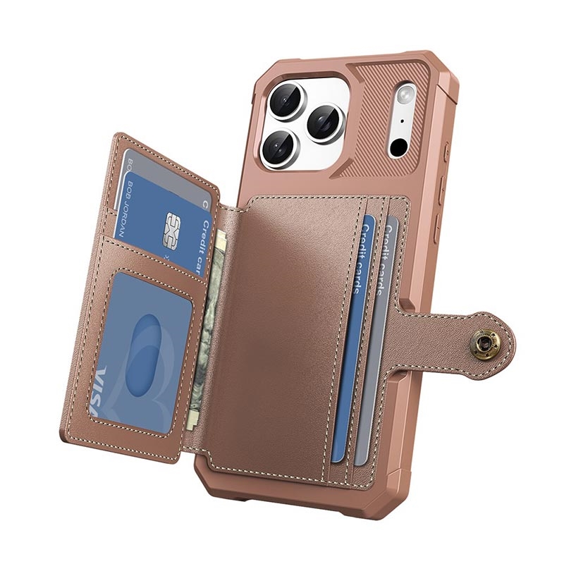 - Die Brieftaschenhülle für das iPhone 17 Pro Max verfügt über einen sicheren Druckknopfverschluss, ein Brieftaschendesign und mehrere Kartenfächer mit einer Geldtasche