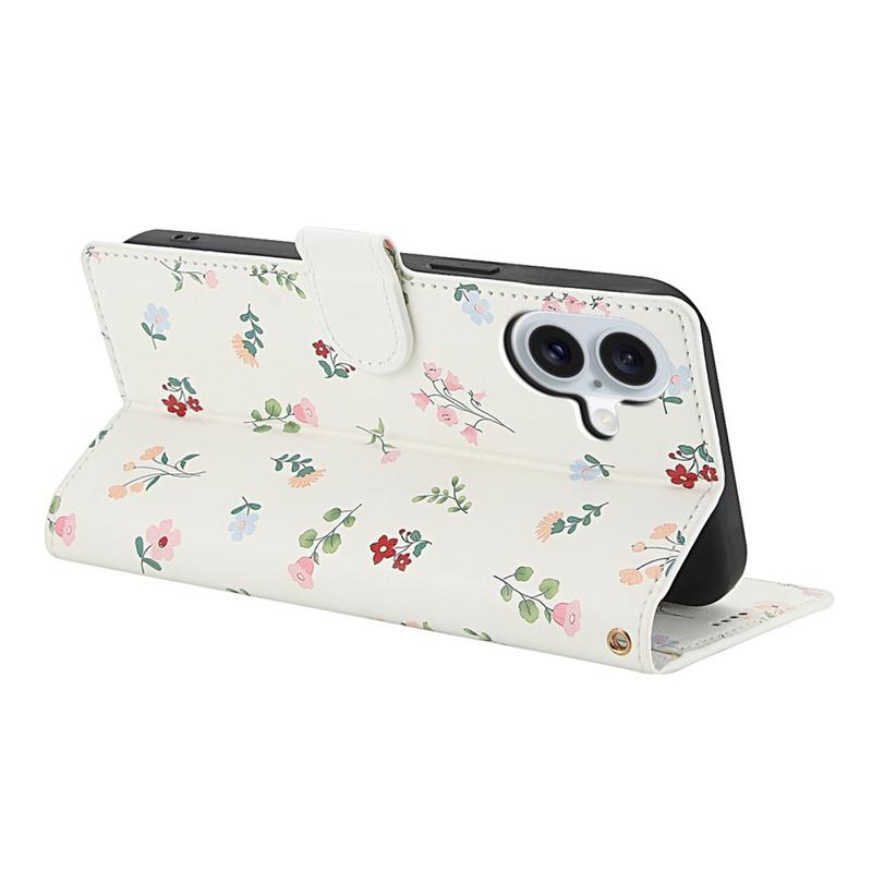 • Rhombisches Blumen Wallet Hülle für iPhone 17 - mit Riemen und Kartenfächern