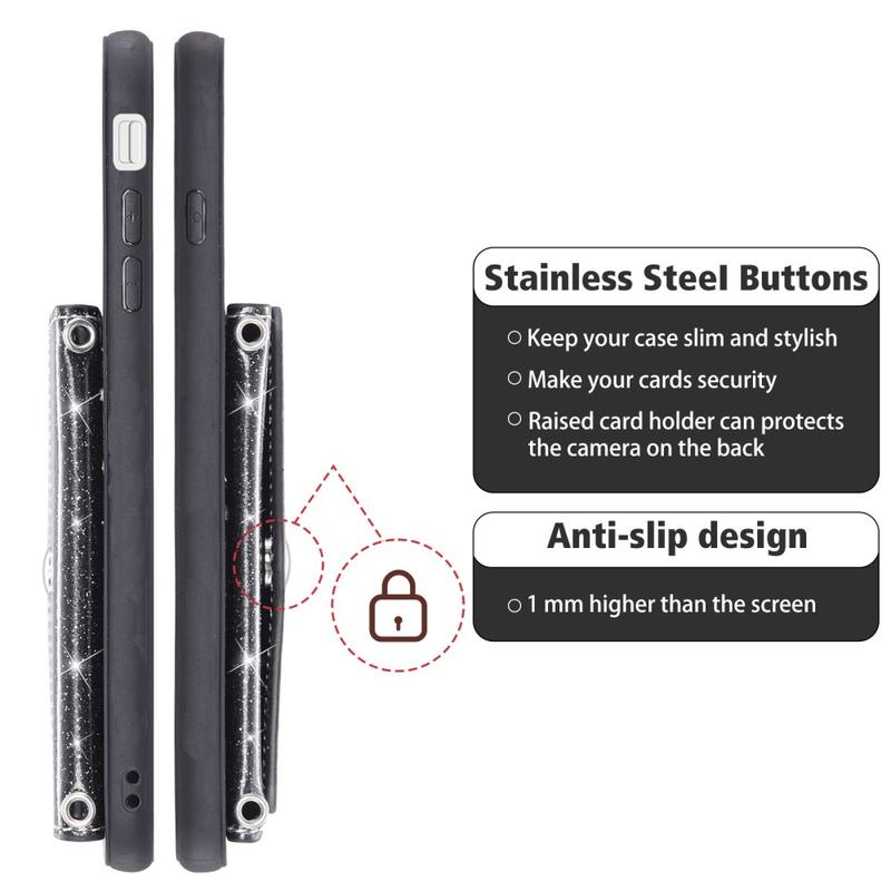 Die hochwertige Hülle aus der Stardust-Serie ist die richtige Wahl, um Ihr iPhone 17 vor möglichen Schäden zu schützen. Es hat einen Kartenhalter auf der Rückseite mit einem Druckknopf, der großartig ist, um Ihre wichtigen Karten aufzubewahren und sicher aufzubewahren. Eine glänzende Glitzeroberfläche verleiht Ihrem Telefon einen Hauch von Glamour. Darüber hinaus wird die Hülle mit einem 150cm langen Schultergurt geliefert, mit dem Sie Ihr iPhone 17 überall hin mitnehmen können.