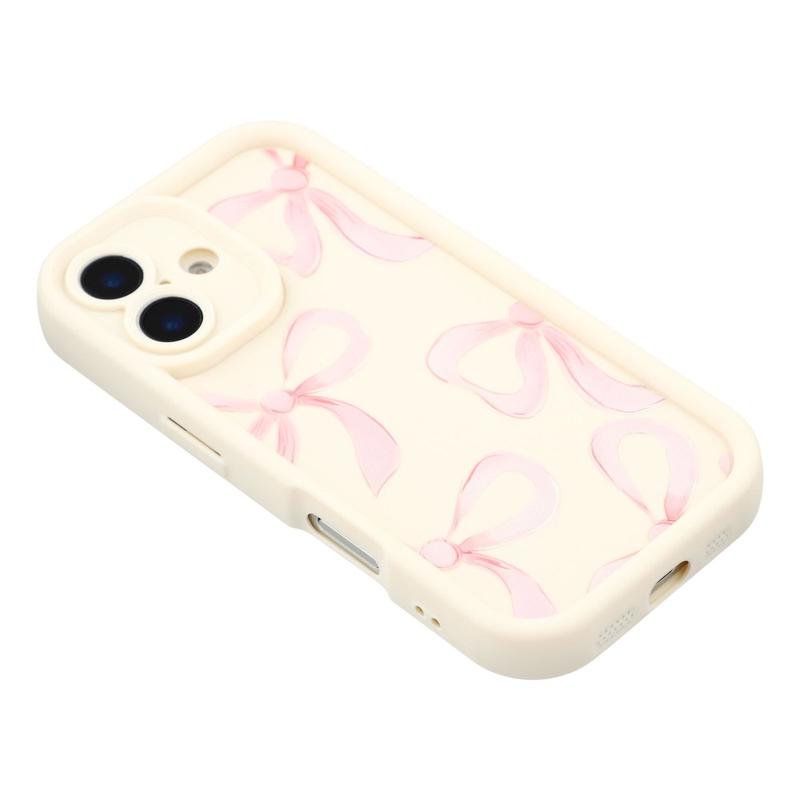 iPhone 17 Stilvolle stoßfeste TPU-Hülle mit erhöhten Kanten - Weiß / Große Schleife