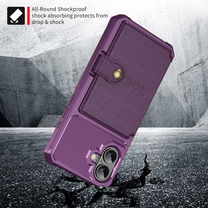 - Die Brieftaschenhülle für das iPhone 17 verfügt über einen sicheren Druckknopfverschluss, ein Brieftaschendesign und mehrere Kartenfächer mit einer Geldtasche