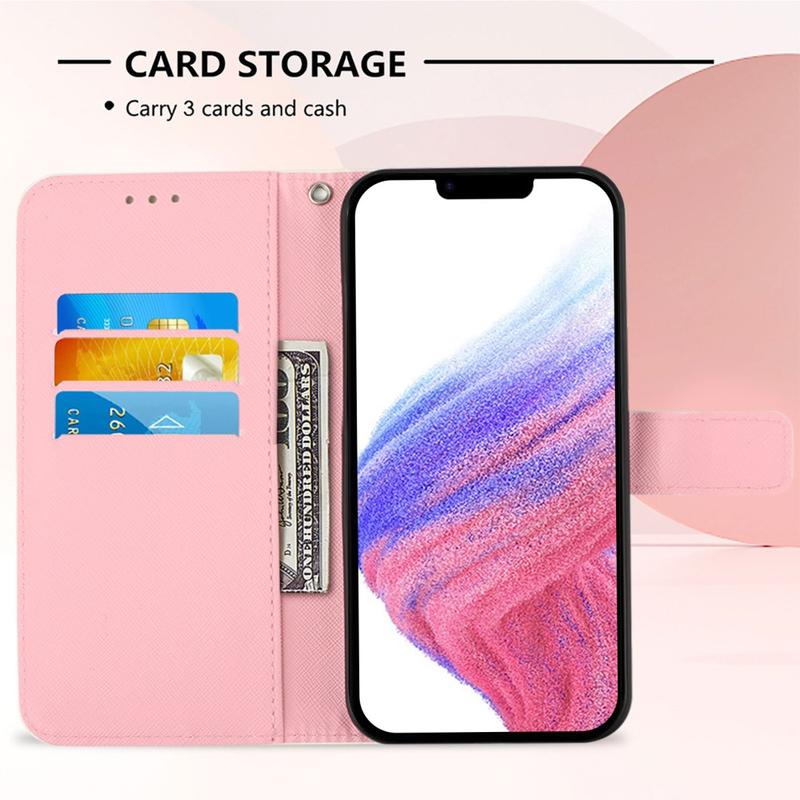 Es verfügt über Innentaschen für Karten sowie ein Geldfach und einen Magnetverschluss, der Ihre Wertsachen sicher aufbewahrt. Die vordere Klappe dient gleichzeitig als Kickstand und ermöglicht es Ihnen, Ihre Hände frei zu halten, während Sie Ihre Lieblingssendungen oder Filme genießen.