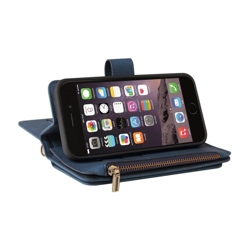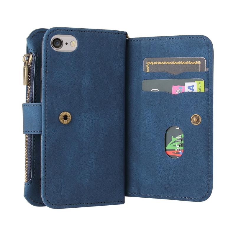 iPhone 6/7/8/SE (2020)/SE (2022) Flip Cover mit Riemen, Geldbörse und Kartenfächern - Blau