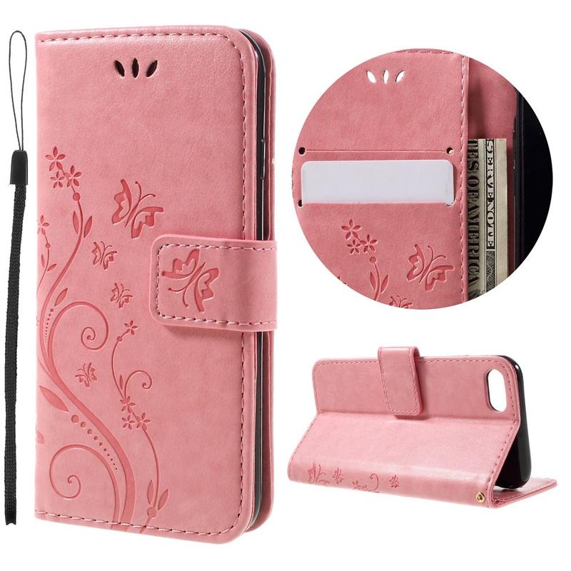 iPhone 7/8/SE (2020)/SE (2022) Butterfly Serie Wallet Schutzhülle - Rosa