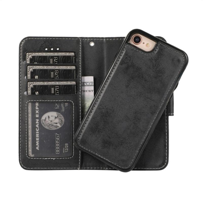 iPhone 7/8/SE (2020)/SE (2022) Vintage 2-in-1-Geldbörsenhülle mit abnehmbarer Abdeckung - Schwarz